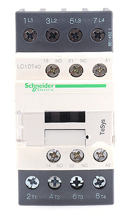 Contactor, Non-Reversing, 220VAC Coil, 40A, 4-Pole, DIN Rail, TeSys D